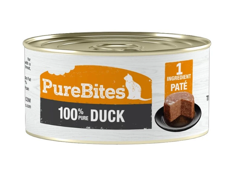 La conserve PureBites 100 % pur canard contient un seul ingrédient ; du canard. La texture de la pâtée se rapproche de la mousse et est facile à manger. Elle peut être donnée comme friandise, mélangée à l’alimentation ou même pour offrir un supplément de protéine à votre animal. La conserve PureBites 100 % pur canard ne contient pas d’agents de conservation. Elle est idéale pour les chats souffrant d’embonpoint, de diabète, d’allergies, de problèmes digestifs ou les chats qui ont une diète restreinte.