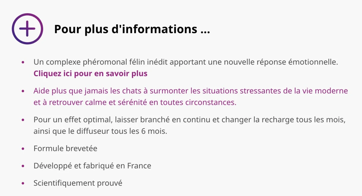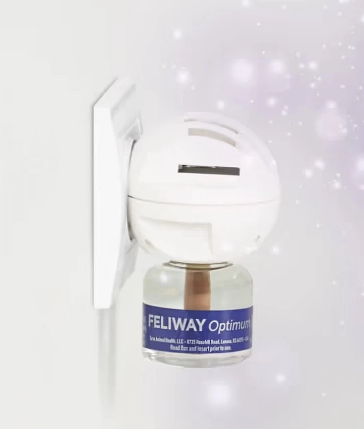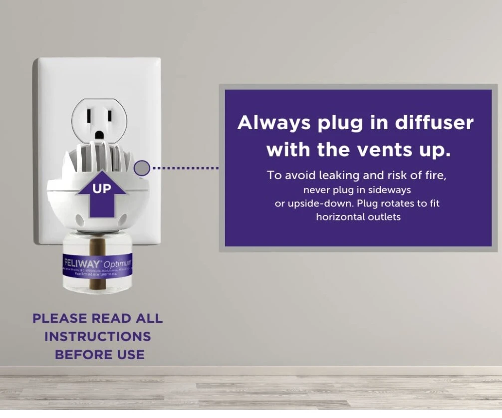 Le diffuseur FELIWAY optimum est LA parfaite combinaison entre le FELIWAY friends et classic! C’est donc l’instrument idéal pour éliminer les problèmes de comportement comme le marquage urinaire, les griffades un peu partout sur les meubles ou la peur intense ET pour éliminer des comportements indésirables comme les bagarres, les traques et les embuscades. Cet instrument est donc parfait pour permettre à votre chat de bâtir une relation de confiance avec vous, son environnement et ses amis chats. Facile à utiliser, il suffit de visser la bouteille dans le diffuseur et de le brancher à l’endroit où les chats se tiennent le plus souvent. Pour de meilleurs résultats, il est recommandé de le laisser branché en permanence. Une recharge dure 30 jours, chaque diffuseur couvre une surface allant jusqu’à 70m². Recommandé par les vétérinaires et comportementalistes.