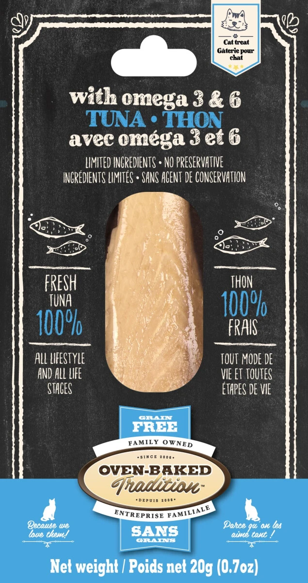 La gâterie pour chats filet de thon & Oméga 3-6 de la compagnie Oven-Baked Tradition est une friandise emballée sous-vide pour une fraîcheur inégalée. Faite à partir de thon frais, cette gâterie saine est faite sans grains, sans agents de conservation et sans gras trans. De plus, les omégas 3 & 6 qu’elle contient favorise un pelage soyeux et lustré. À seulement 17 calories par unité et 7 ingrédients, il s’agit d’une gâterie qui saura parfaitement satisfaire les fringales de votre chat.
