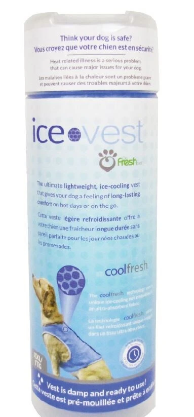 La veste pour chien Ice Vest de la compagnie Go Fresh Pet est le produit par excellence pour les chiens qui souffrent beaucoup de la chaleur, rafraîchit jusqu’à 6h de temps. La veste est faite de tissus combinés avec la technologie Cool fresh léger qui protège aussi des rayons du soleil. Pour la faire fonctionné il faut simplement le mettre dans l’eau puis l’essorer.