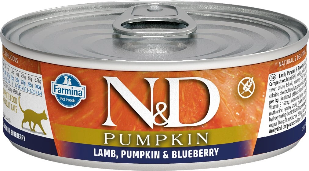 La nourriture en boîte Farmina Potiron pour chats à l’agneau et potiron est succulente, naturelle et ne contient aucun grain. Les ingrédients contenus dans les conserves Farmina sont ajoutés crus et cuits à la vapeur une seule fois. Ce procédé unique fait en sorte de préserver les caractéristiques sensorielles et nutritionnelles pour votre chat. Cette recette, formulée par des vétérinaires en Europe, repose sur plus de 50 ans d’innovation en matière de nutrition animale. Elle ne contient pas de céréales, de sucre, de sous-produits, de colorants, d’OGM ni d’agents de conservation artificiels. Il s’agit d’un repas complet et balancé qui est sous forme de morceaux dans un bouillon que les chats adorent tant.