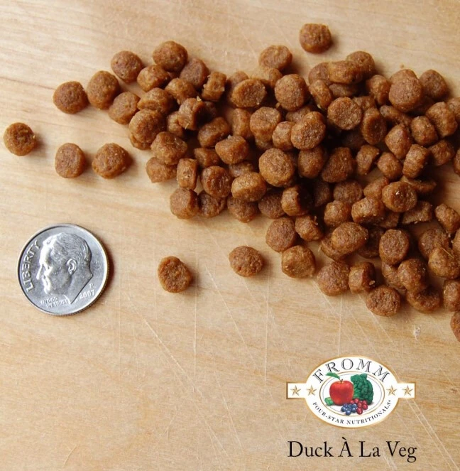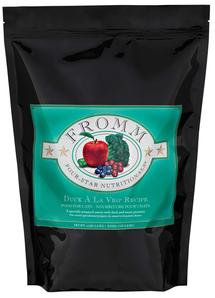 Personne n’aime manger la même nourriture encore et encore. Fromm Four-Star l’a bien compris ! Ils vous offrent une foule de variétés différentes que vous pouvez changer à votre gré ! L’une d’elle est la nourriture pour chats Fromm Four-Star formule canard à la veg qui offre tout ce dont votre chat à besoin en plus d’augmenter ses barrières immunitaires et digestives. Elle est également très performante sur la chute des poils et aide même à enrayer des problèmes cutanés tels que l’acné féline et les desquamations. La nourriture pour chats Fromm Four-Star formule canard à la veg rendra l’éclat de jeunesse à votre compagnon !