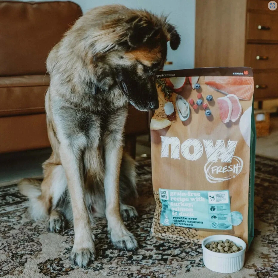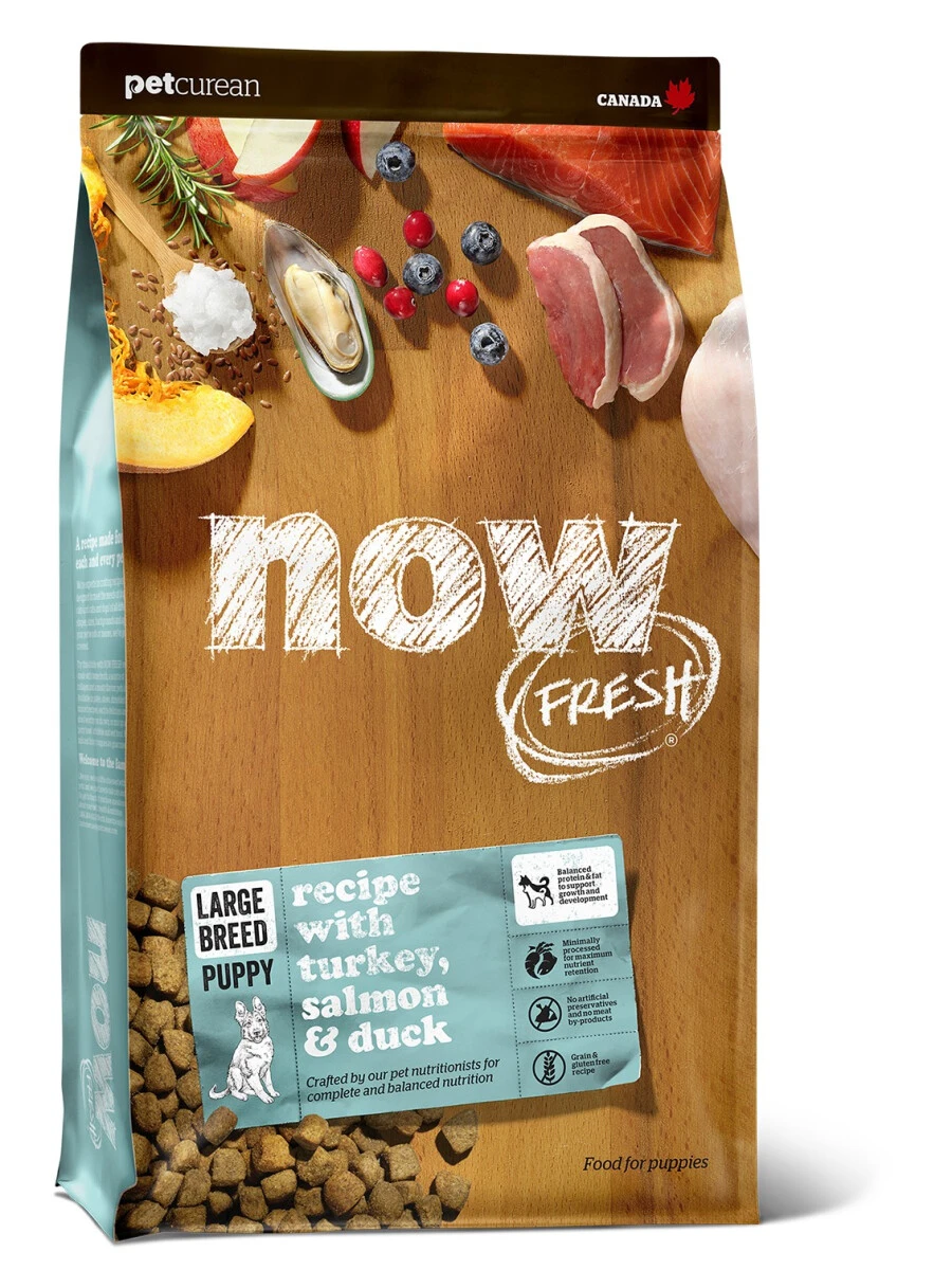 Faite de dinde, de canard et de saumon frais, la nourriture Now Fresh sans grains pour chiots de grandes races répond aux besoins alimentaires des chiots de 0 à 15 mois qui auront un poids supérieur à 50 lb une fois adultes. Elle ne contient aucune viande d’équarrissage et aucun sous-produit animal. Elle est également sans gluten et ne contient aucun grain. De plus, elle ne contient aucune protéine de poulet, ce qui en fait un produit parfait pour les chiens en croissance qui ont une sensibilité à cette protéine. La nourriture Now Fresh sans grains pour chiots de grandes races est très aimée des chiots. Elle contribue aussi à une bonne hygiène intestinale, un beau pelage ainsi qu’une croissance optimale pour les grands chiens. Produit canadien.