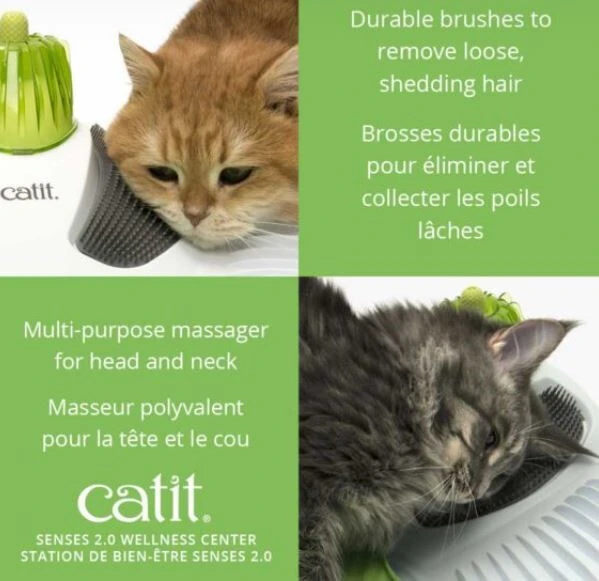 La station de bien-être Senses 2.0 de Catit est le lieu de détente parfait pour votre chat! En effet, elle comprend 2 brosses durables et flexibles qui permettent au chat de s’auto-nettoyer et ainsi d’éliminer les poils morts. De plus, un masseur polyvalent pour la tête et le cou ainsi qu’un stimulateur de gencive comprenant de l’herbe à chat se trouve en haut de la station pour aider à diminuer le stress chez le chat et le faire sentir mieux. Finalement, le tapis et les différentes textures permettent au chat de se relaxer selon ses préférences. La station de bien-être Senses 2.0 de Catit est donc une zone de toilettage et de détente 360° qui ne prend presque pas de place!